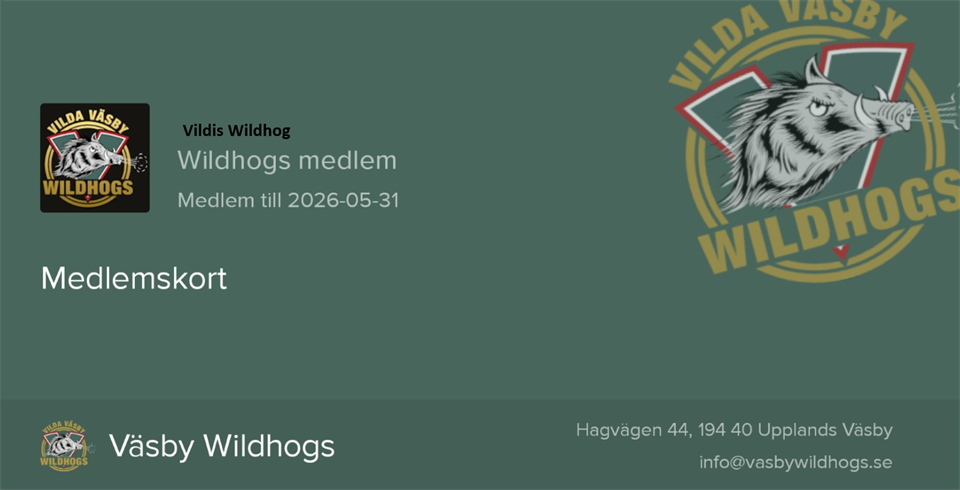 För att få ta del av Väsby Wildhogs erbjudanden så måste du kunna uppvisa ditt medlemskort. Lättast är att du laddar ned appen "laget.se" till din telefon och där hittar du sedan ditt digitala medlemskort. Om du inte känner dig bekväm med appar så skriver du till info@vasbywildhogs.se så hjälper vi dig med ett fysiskt medlemskort. Ladda ner appen: Sök efter "Laget.se" i din telefons app-butik (App Store, Google Play, AppGallery) och ladda ner den gratis. Logga in: Logga in med din e-post och det lösenord du har skapat. (finns även länk för att återställa lösenordet) Hitta kortet: Gå till menyn (tre streck) och välj "Medlemskort", eller leta efter den direkt i appen. Medlemskortet visas efter att medlemsavgiften är betald.